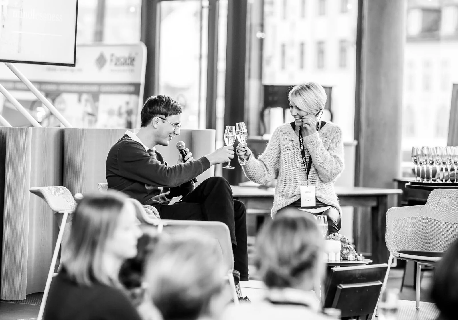 Designer, Fredrik Bull, i prat med messeleder, Trude Vaaga, under Tendens Social 2018.