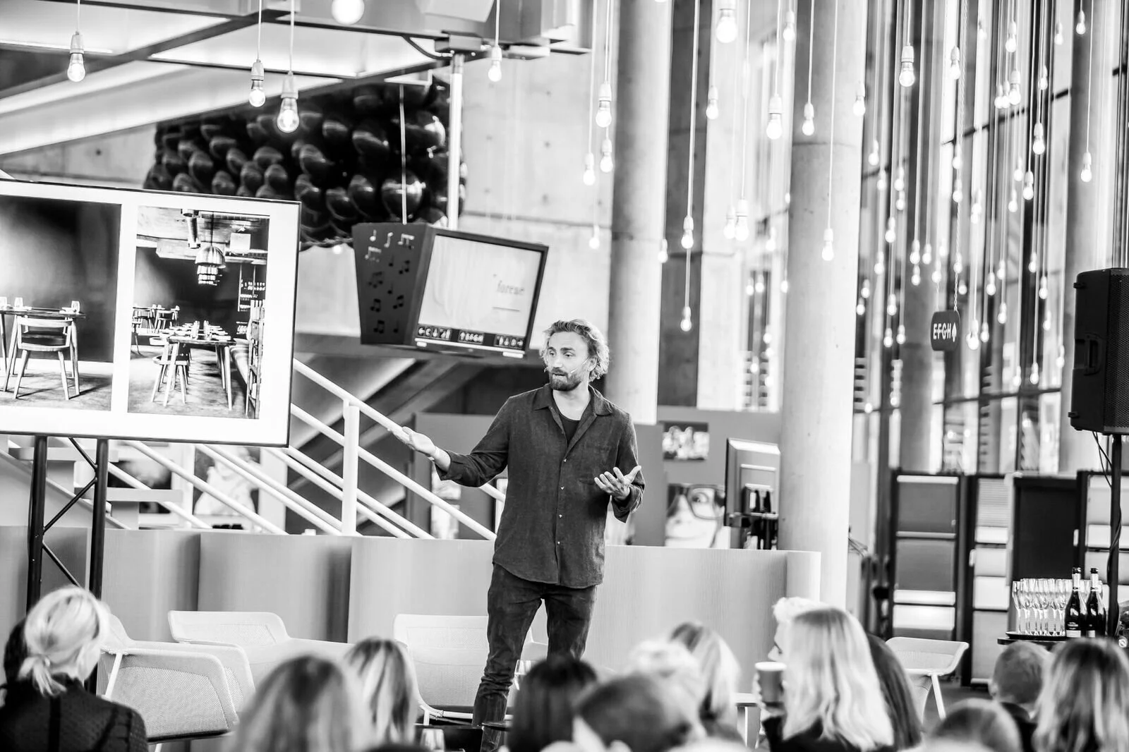Designer, Kim Dolva fra København Møbelsnedkeri, holder foredrag under Tendens Social 2018.